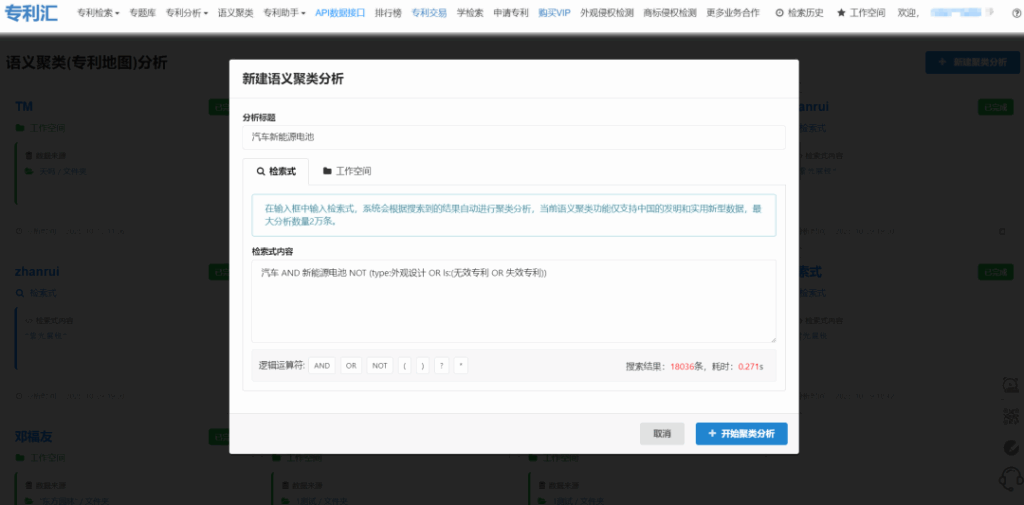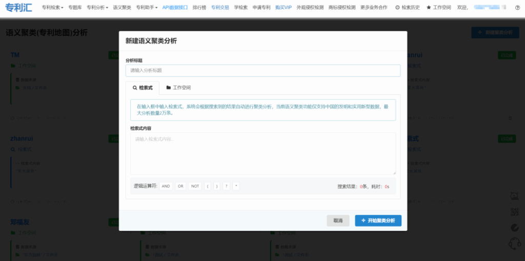 - 進入專利匯平臺,啟動語義聚類分析功能。