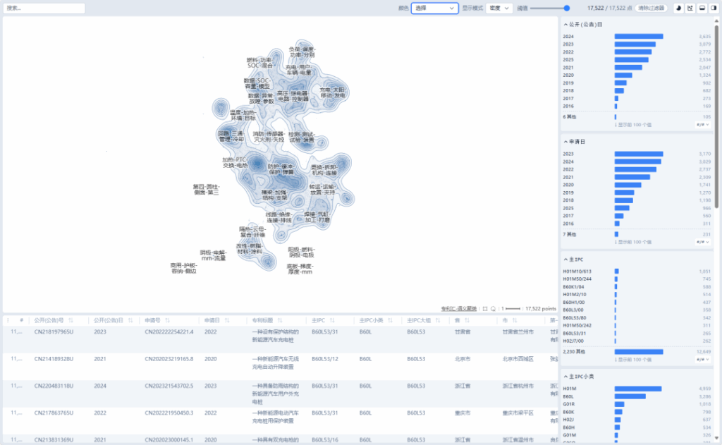 假設我們期望分析關于“新能源汽車電池”的專利,想快速了解該領域的技術分布。