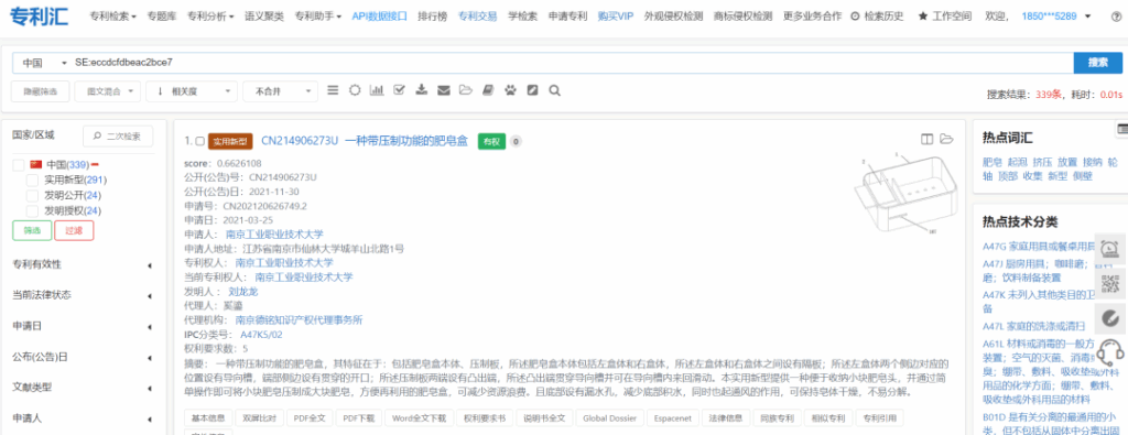 假設我們正在研究“壓板肥皂盒”技術,希望查找相關專利。